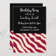 Un arrière - plan noir accentué par une bordure d'imprimé zèbre rouge et crème. Customisez avec toutes les informations de votre anniversaire selon vos besoins.