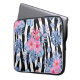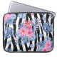 Zebra Pattern With Tropical Hibiscus and Flamingos Laptop Sleeve