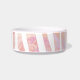 This is a heavy, durable bowl decorated with Tibbies of many colors, the perfect size for hungry/thirsty Tibs. The design is interesting and printing clear.