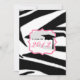 A graduation invitation featuring a black and white zebra print background on front and back. Front features pink and black "Class of 2011" text design with black graduation cap inside pink bracket frame. Personalize opposite side with details of your occasion.