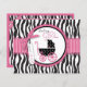 Baby carriage with zebra and dot prints and a hot pink polka dot bow "words of advice" note card.