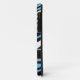 Stylish custom iPhone 5 case personalized with your name, and designed with a zebra print pattern with black, white, and blue zebra stripes.