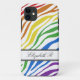 Stylish custom iPhone 5 case personalized with your name, and designed with a zebra print pattern with white & rainbow zebra stripes.