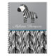 Black and white zebra pattern covers the lower half of this cute notebook. The top half is a pastel grey with a cute, kawaii zebra standing over a template to add your name to personalize for the perfect gift.