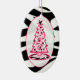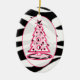 A feminine girly Christmas ornament featuring a background of zebra print. Pink Christmas tree with pink lights and zebra print ornaments, tree skirt, and star inside pink frame.