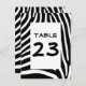 Zebra stripes pattern in black and white with room for a table number. You can customize and erase the word "Table" and centre the number.