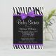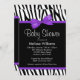 Zebra Purple Printed Bow Baby Shower Invitation