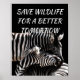 This nature poster has two zebras against a black background and the words SAVE WILDLIFE FOR A BETTER TOMORROW.