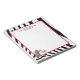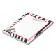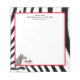 Black & white zebra stripes border the centre white space that is bordered in red. A smiling zebra is in the lower left corner and can be removed if you like. Update the contact info with your own name, address and email address to personalize your notepad.