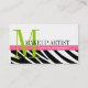 HOT PINK, LIME GREEN AND BLACK AND WHITE ZEBRA STRIPES PATTERN MAKE THIS A BOLD, FUN, DESIGN YOU CAN MAKE A A UNIQUE BUSINESS LOGO WITH YOUR MONOGRAM AND NAME. SHOWN AS A MAKEUP ARTIST BUSINESS CARD BUT CAN BE MADE FOR ANY BUSINESS WITH THIS VERSATILE DESIGN. Monogram Customizable Business Card. Card is free to customize but design may not be copied and used for commercial purposes. Elke Clarke©2011.
