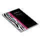 Black and white zebra stripe with pink border personalized notebook. Perfect for taking notes or writing a journal or diary, etc. Personalize with your name, initials or any text you want.
