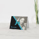 Zebra stripes and blue satin ribbon note card with photo use as a thank you note or change text.