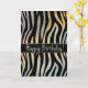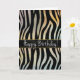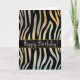 Graphic Zebra Stripes superposé sur un arrière - plan de couleur terre chaude avec une texture subtilement chatoyante. Sur le devant de la carte se trouve un "Joyeux anniversaire" en écriture blanche sur un ruban noir. À l'intérieur de la carte est un message d'anniversaire court, qui peut être remplacé par un message spécial de l'expéditeur.