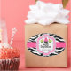 © 2012 Socialite Designs. Our elegant pink, white, turquoise and green bakery box seal / sticker has three cupcakes, in a whimsical polka-dot banner, a zebra print pattern background and pink ribbon. All design elements can be moved, resized or deleted to suit your bakery business. Just replace our template text with your business information.