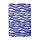An updated take on a classic animal print bath mat - zebra stripes in dark cobalt blue on a white background