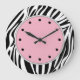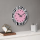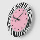 Horloges murales zébrées avec rayures zébrées noir et blanc motif et arrière - plan rose sur le visage de l'horloge dans ce décor mural design horloge animal pour votre cuisine, salle de bain, ou toute chambre dans votre maison que vous voulez ajouter de la couleur et du caractère. Idéal pour les amateurs de décoration africaine ou de faune sauvage.