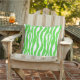 An updated take on a classic animal print outdoor pillow - zebra stripes in lime green on a white background