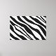 Zebra Stripes Modern Canvas Art. These black and white Zebra stripes are shown on a 60 by 40 inch canvas with 2 inch sides. This Zebra print may be customized to a smaller size.