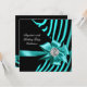 Zebra Teal Silver Jewel Black Elegant Party Invitation