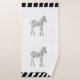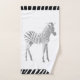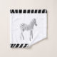 A majestic zebra with its iconic stripes on a white pristine backdrop with a zebra print on the border to give it some pop. Wildly african.