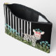 This accessory bag has an adorable Zebra with pink glasses. The Zebra is standing in a field of grass and blue flowers, with a partial background of black and white stripes. This style is available in two sizes. Dimensions: 12"x8.5” Large (shown here) / Dimensions: 8.5"x6" Small.
