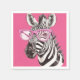 Zebra with Pink Glasses - Pink Background Napkin