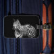 Zebras w/ leather strap Stand out in the baggage carousel with a custom luggage tag from Zazzle! No larger than a business card and constructed of 100% acrylic, this luggage tag is ready to stand-up to the travel demands of any road warrior or adventure seeker. Produced using the AcryliPrint®HD printing process, your baggage tag shows designs, text, and photos in vibrant clarity and brilliant colours. Customize with your personal information on each side and escape bag mix ups for years to come. Dimensions: 2" x 3.5" (business card size). Made of ultra-durable acrylic. UV resistant and waterproof. Leather luggage strap included.