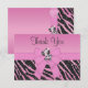 Le zèbre rose mignon vous remercient les cartes plates parfaites de la fête d'anniversaire et des baby showers d'une fille. L'amusement et les rayures animales imprimées roses et noires faites sur commande fascinantes de zèbre scintillent des invitations de regard avec un ruban girly scintillant rose assez imprimé et cintrent et un beau petit zèbre rose lunatique de bande dessinée et deux beaux coeurs roses imprimés de bijoux (sur l'inverse des invitations) sur un arrière - plan rose. Ces cartes élégantes sont décorées les deux côtés. Invitations élégantes, chics et chiques, modernes. NOTEZ SVP : Tous les produits sur Zazzle ont des images imprimées d'appartement. Si vous avez besoin d'aide customisant votre produit svp me contactez par mon magasin et je serai heureux d'aider. J'ai les produits assortis dans mon magasin.