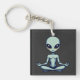 "This tranquil design features a cartoon-style alien with a light blue-green complexion, large black eyes, and a serene expression, seated in a lotus meditation pose. Its hands are resting gently on its knees in a meditative mudra. This design conveys a sense of peace, mindfulness, and otherworldly calm. This versatile design could be used on products promoting relaxation, meditation, or a touch of cosmic whimsy. Imagine it on yoga apparel, meditation cushions, calming home decor, or inspirational stationery."