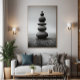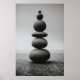 A serene composition of carefully balanced stones, symbolizing harmony, patience, and the pursuit of inner equilibrium. The minimalist backdrop and the natural tones of the stones create a meditative atmosphere, inviting reflection and silence.