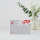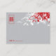 Oriental zen red and light ash grey bamboo leaves with a simple minimalist single lined rectangle frame double happiness symbol, double sided wedding place card / guest escort card. An elegant and stylish chinese / oriental / asian themed wedding design which is modern and classy.