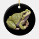 A photo artwork of a light green and beige tree frog with a serene zen gaze, black circle background. This amiable amphibian has golden brown eyes and an eye stripe, hands folded as if in meditation. The spiritual meaning of frogs is one of joy, good luck, environmental balance, natural health and medicine, music, romantic love, moon magic, friendship and community. Frogs are associated with elemental nature magic and the powers of transformation. Frogs and other amphibians begin life as an egg, hatch as water-dependent larvae (ie, frog tadpoles or pollywogs), and eventually change into adults that breathe air and can live on land (or in trees). Even tree frogs that inhabit the upper canopies need to spend their youth in water, even if it's just a puddle on a leaf. Tree frogs often lay their eggs right above water, so that the tadpoles will drop into the water as soon as they hatch. In folklore and ancient medicine, frogs represent organic or natural health in part due to their sensitive skins, which at one time were used by shamans in medicine rituals. In many cultures frogs are also considered fortunate for money, and in Feng Shui black is the colour for both water and wealth.