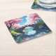 Zen Garden Bridge Cherry Blossom Reflection Square Paper Coaster