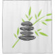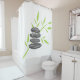 Zen pebble stones stacking and green bamboo leaves bathroom decor design.