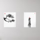 Zen Pine Bird Ink Art Wall Print Set