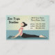 Unique fitness, Yoga/Pilates Instructor Business Card. Card front shows a young woman in Yoga pose on floor mat. Customize front and back card text with your information.