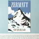 Zermatt Switzerland Ski print in a beautiful vintage style.