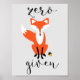 Affiche unique et amusante avec calligraphie moderne et illustration de renard. Un accent parfait pour n'importe quelle chambre.