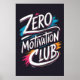 A playful hand-lettered typography poster with the phrase “Zero Motivation Club” in bold quirky brush script. Perfect for bedrooms, dorm rooms, or offices, and a humourous wall art gift for anyone who loves sarcastic and relatable quotes.