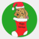 Boxer de chiot mignon et amusant dans un bas autocollants ronds. Idéal pour sceller des enveloppes de cartes de Noël ou décorer des paquets de vacances.