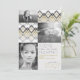 This modern chic graduation party invite / graduation photo announcement design features a stylish and trendy flat gold, silver, grey/grey, black and white checked chevron / zig zag pattern with 3 photo collage on the front and your grad party event details on the back of the card.