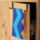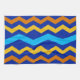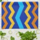 Cotton kitchen towel in a colourful blue, orange and gold zigzag design.