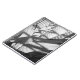 A black and white rendering of light and dark patterns, cast on a mix of plants.