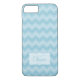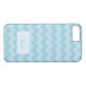 Modern zig zag patterned iphone cover in blue hues. Customize this bold patterned case cover with your name and your family initial or monogram. Currently reads Eleanor J. Ideal personalized gift for girls and women. Design by Sarah Trett.