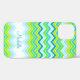 Modern zig zag patterned iphone cover in teal, green, yellow and blue hues. Customize this bold patterned iphone case cover with your name and your family initial or monogram. Currently reads Michelle R. Ideal personalized gift for girls and women. Design by Sarah Trett. www.sarahtrett.com See the whole range of iphone cases and covers here