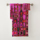 Cet ensemble de serviettes de bain coloré Cool dispose d'un Cool Abstrait rose et noir Retro Zigzags Design avec des accents rouge, violet, rose chaud, magenta et jaune. Le résultat est un tableau Cool, coloré, Super, psychédélique, rétro, Wavy Abstrait que vous aimerez!