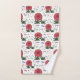 It was advertised as NAVY blue and the color sent was greenish blue. I am disappointed in this product. Quality and printing are great as are all my other orders. As you can see in picture the tea towel on right is perfect, hand towel not so much! Print was awesome and just as ordered