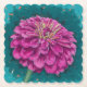 Bring a bit of summer sunshine in and protect your furniture with these colourful coasters. The original painting was done in acrylic, to capture the essence of the last zinnia of the season before the frost.