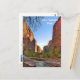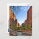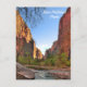 Here is a view of the Virgin River flowing through Zion National Park. The back reads --- "A million years of flowing water has cut through the red and white beds of Navajo sandstone that form the sheer walls of Zion."