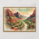 Here’s a vintage-style mountain landscape postcard design with a retro colour palette and nostalgic feel.